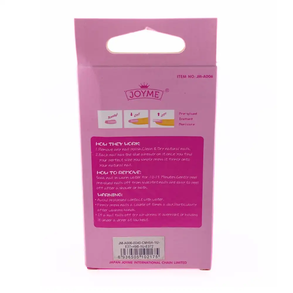 • Su innovador diseño adhesivo permite una aplicación sin complicaciones: basta presionar la uña postiza contra la natural durante unos segundos y quedará firmemente adherida el set incluye una guía paso a paso con ilustraciones claras, ideal para que padres y niños la apliquen de forma independiente y segura.
