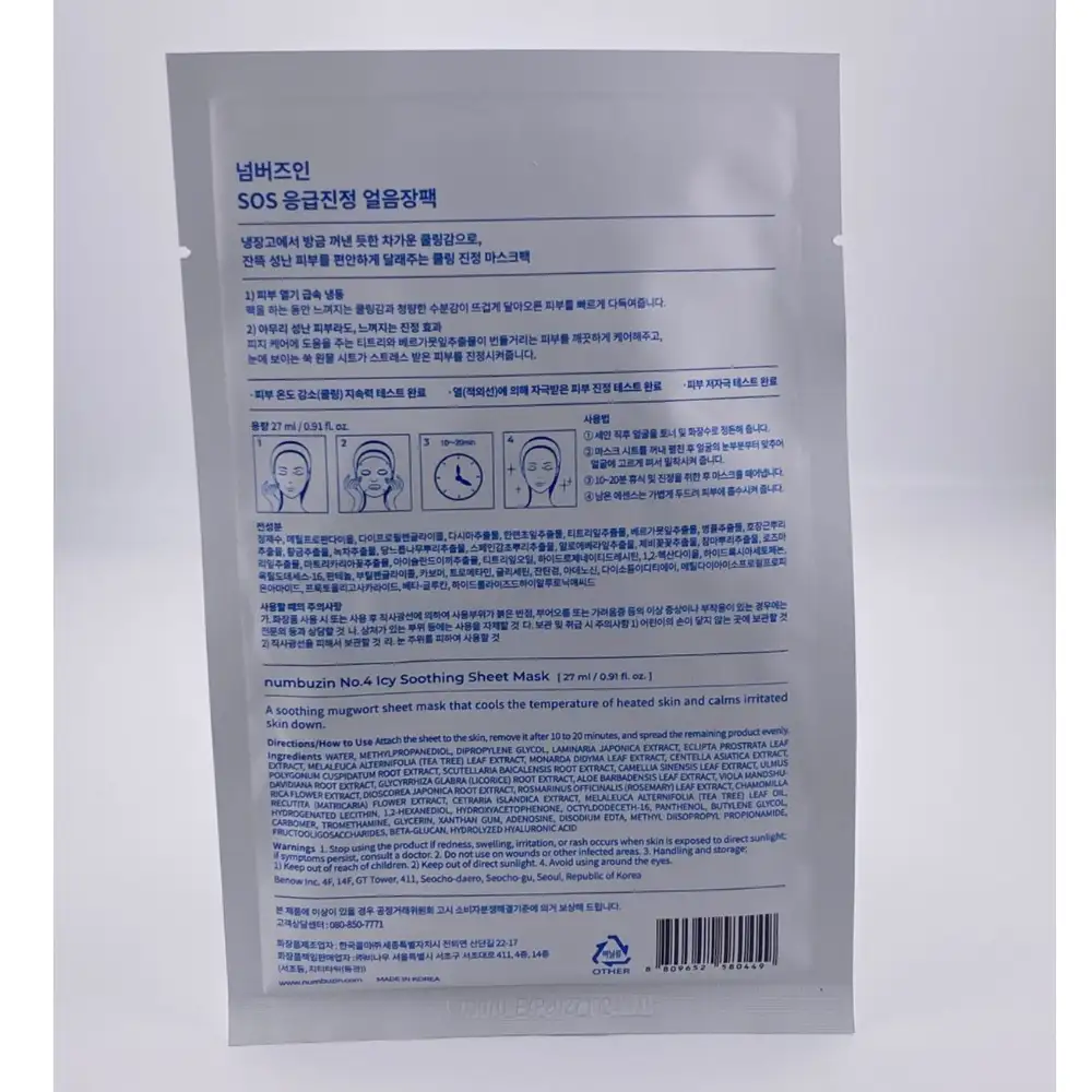 Mascarilla Calmante Helada Numbuzin No.4 – Enfriamiento Instantáneo para Piel Caliente, Alivio Rápido de Brotes Repentinos, Reduce Enrojecimiento y Sensación de Ardor, Fórmula Refrescante con Ingredientes Naturales para Calmar y Relajar la Piel Irritada