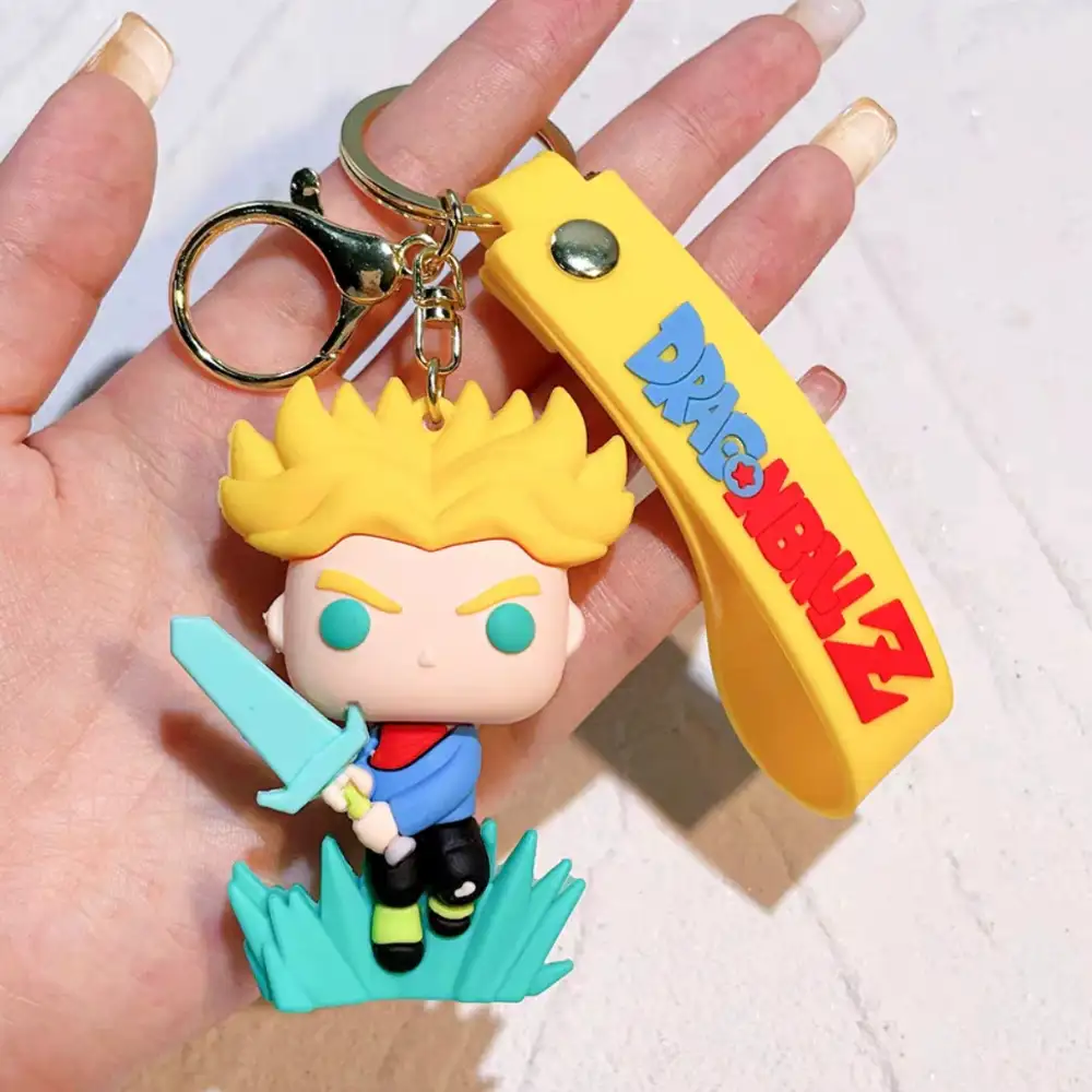 Llavero de goma Super Saiyan Trunks de Dragon Ball Z, diseño detallado y resistente, ideal para coleccionistas que buscan estilo y funcionalidad en sus llaves.