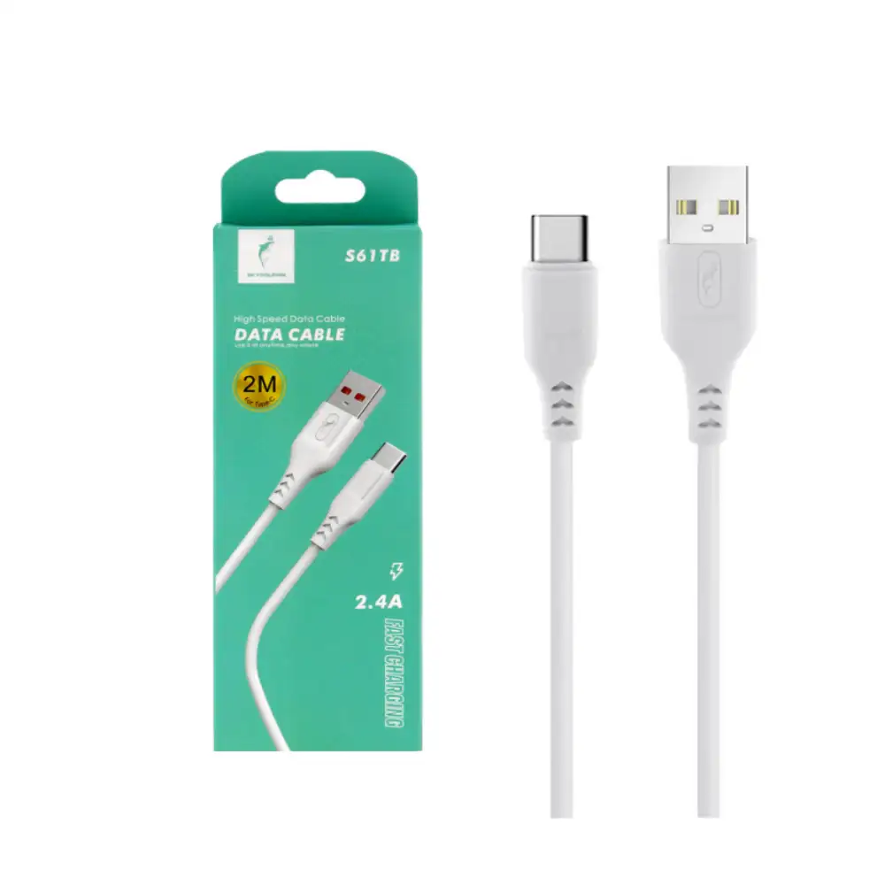 Cable USB Tipo C de 2 Metros, Color Blanco, Alta Velocidad de Transferencia y Carga Rápida, Compatibilidad Universal con Dispositivos Android, iPhone, iPad, MacBook y Otros, Construcción Duradera y Flexible, Ideal para Hogar y Oficina