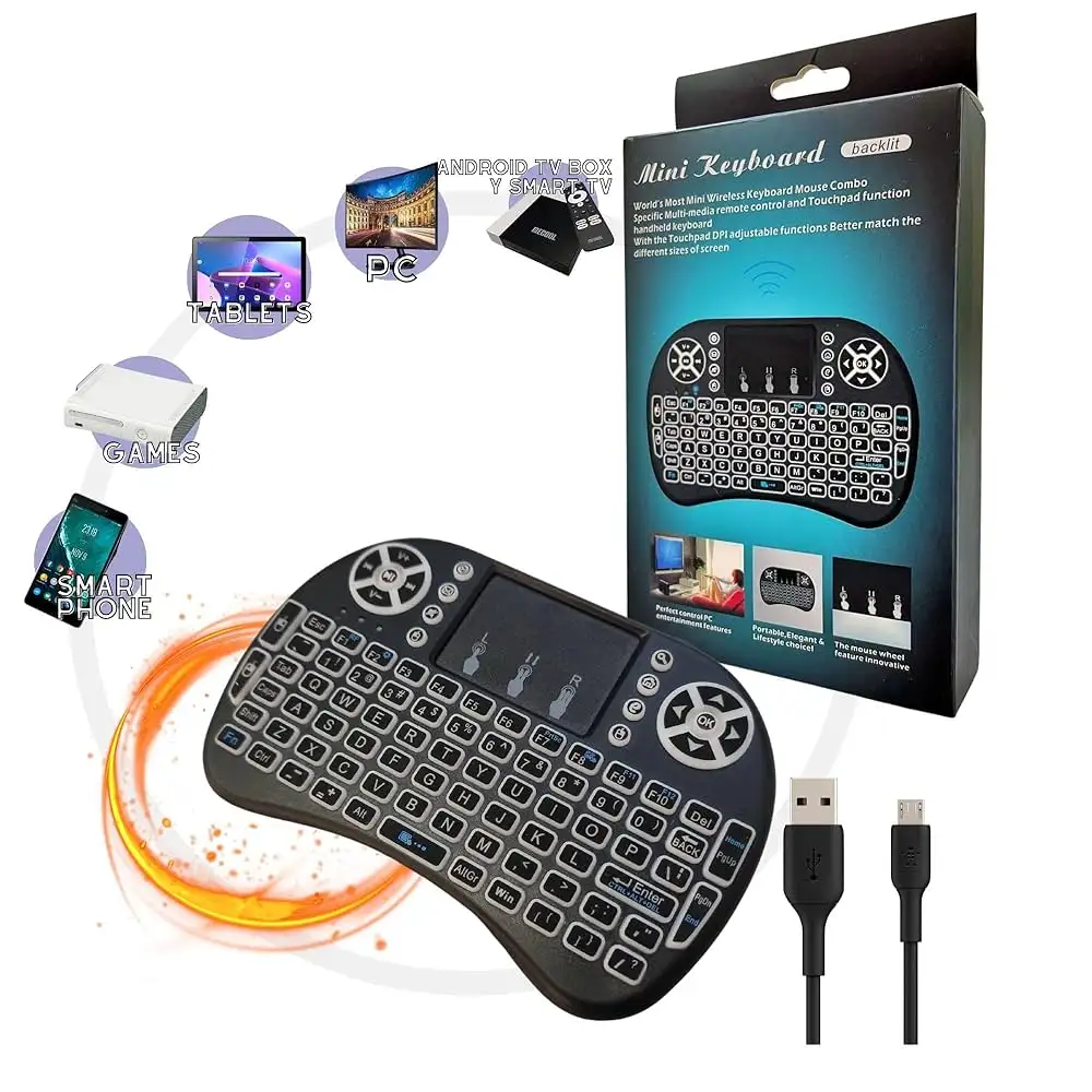 Teclado mini inalámbrico LUXVI con Bluetooth 5.0, retroiluminación RGB, batería recargable de 30 días y diseño ergonómico, ideal para Smart TV, consolas y PC.