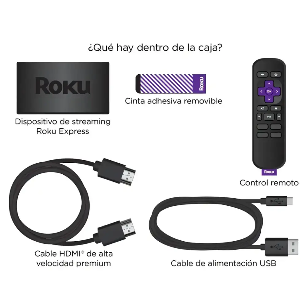 Roku Express HD – Reproductor de Streaming en Alta Definición con Cable HDMI Incluido, Configuración Sencilla y Rápida, Acceso a TV Gratis, Noticias en Vivo, Deportes, Películas y Música, Compatibilidad con Netflix, Disney+, Hulu, Peacock y Más, Solución Asequible para Mejorar tu Televisor