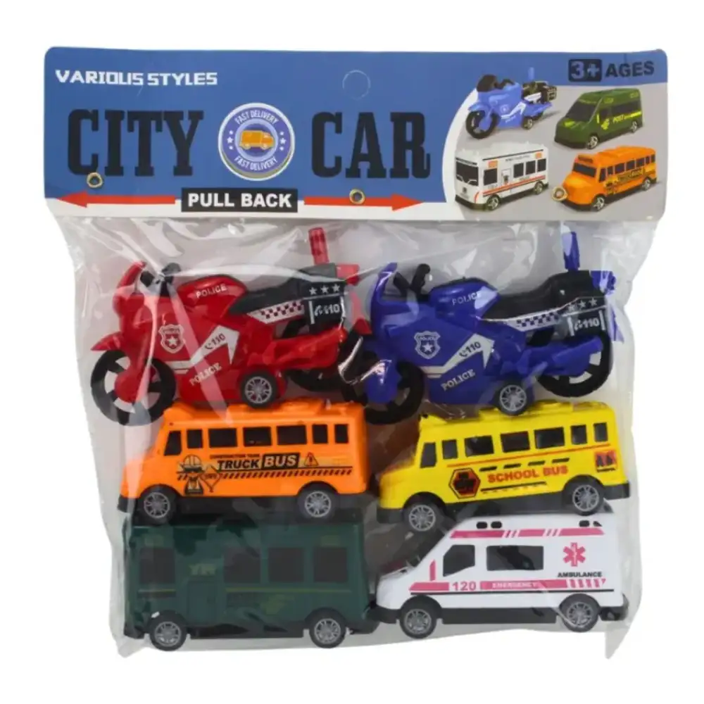 Paquete de 6 miniaturas City Rescue Pull Back, vehículos de fricción realistas y seguros, ideales para juegos de rescate, coleccionistas y regalos para niños.