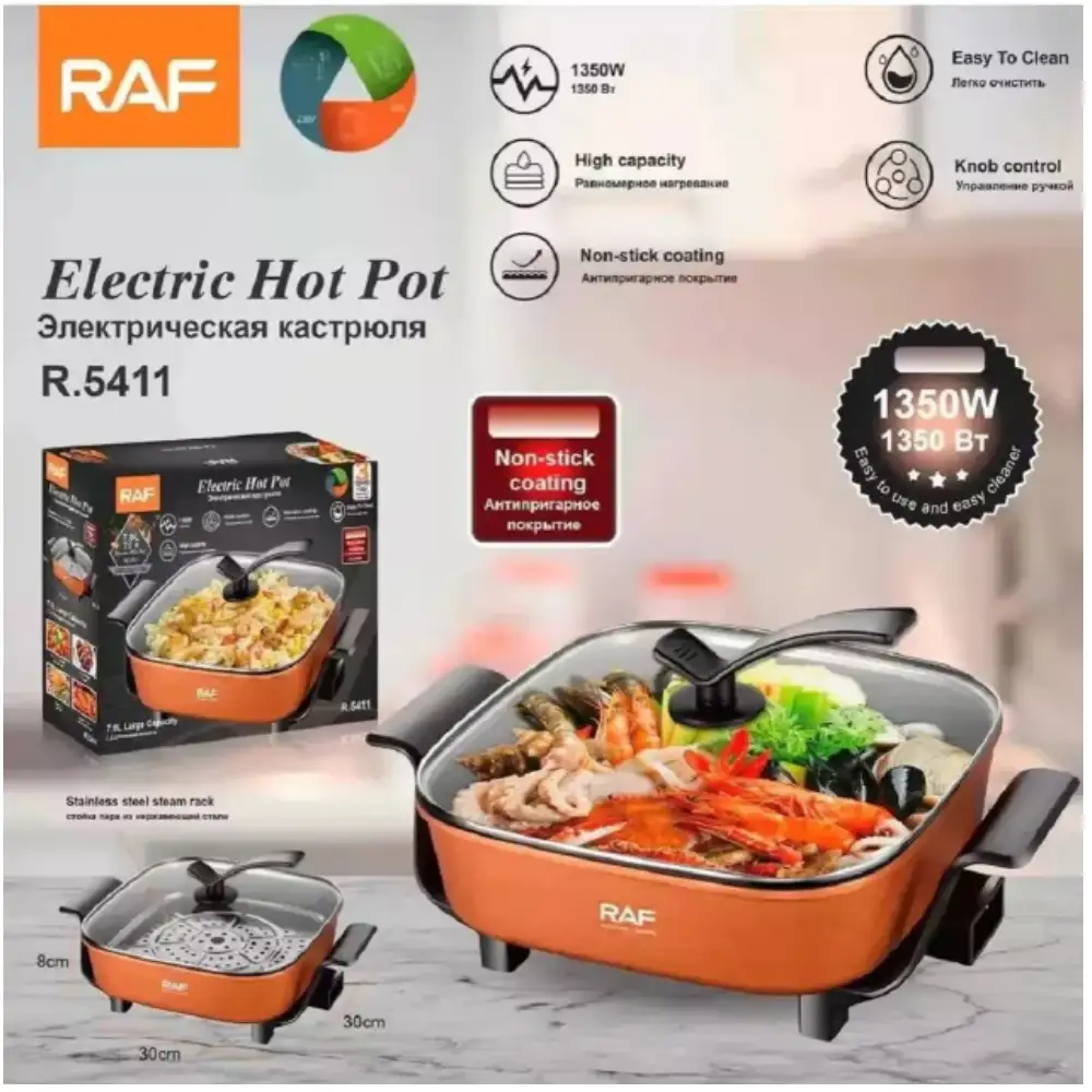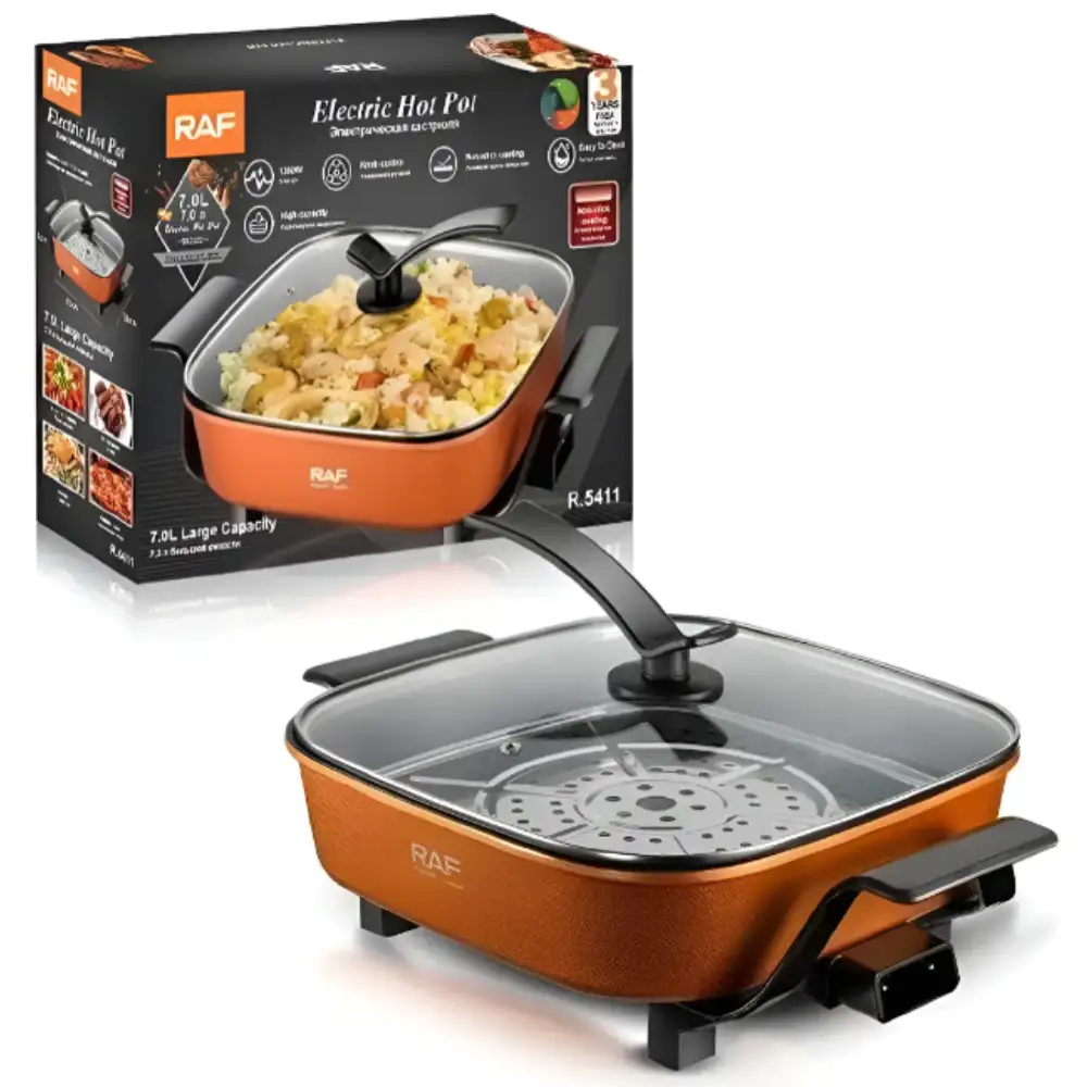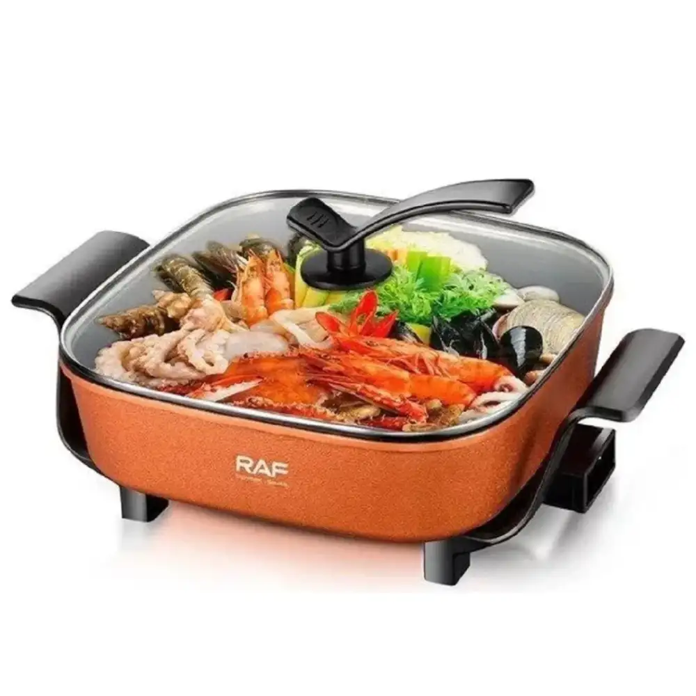 • La olla eléctrica RAF modelo 95411-110 combina una potencia de 1200 W con un diseño compacto que permite cocinar una variedad de platos, desde arroces y guisos hasta sopas y postres, garantizando resultados uniformes y sabrosos gracias a su sistema de distribución de calor inteligente que evita puntos calientes y asegura una cocción homogénea en cada uso, ideal para familias y profesionales que buscan rapidez y calidad en la cocina.