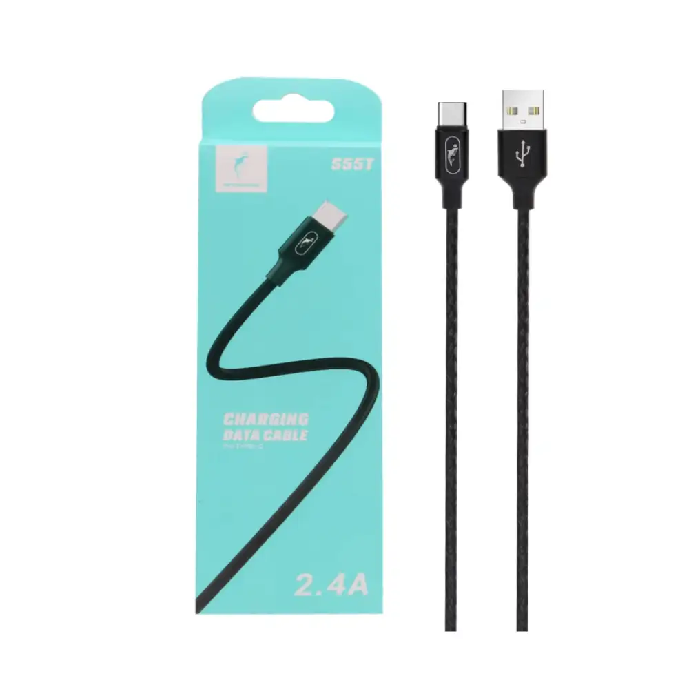Cable de Nylon USB Tipo C S55T de alta resistencia, color negro, 1 metro de longitud, con conectores reforzados y recubrimiento trenzado para máxima durabilidad y transferencia de datos a alta velocidad, ideal para dispositivos móviles, laptops y accesorios modernos