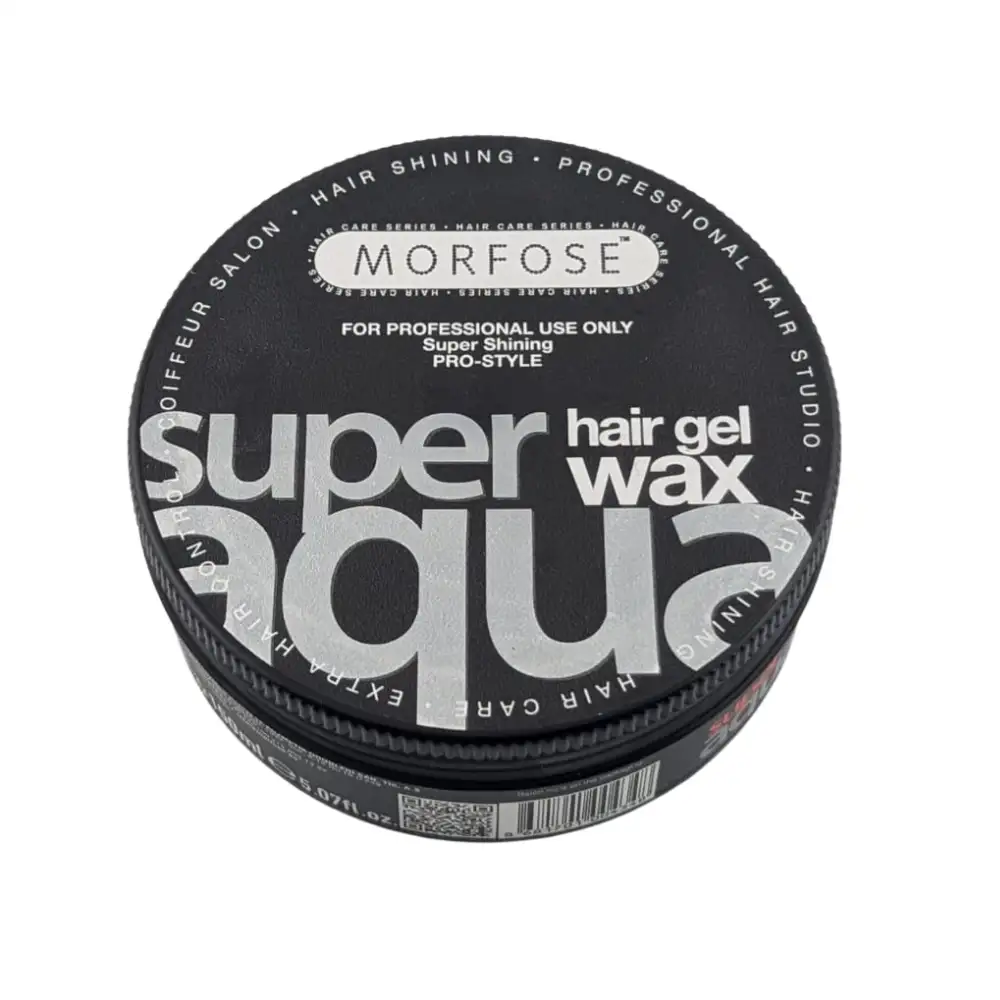 Cera en gel Morfose Super Aqua, fijación fuerte y acabado brillante, fácil de lavar y apta para cabello seco o húmedo la solución profesional para estilos duraderos y luminosos.