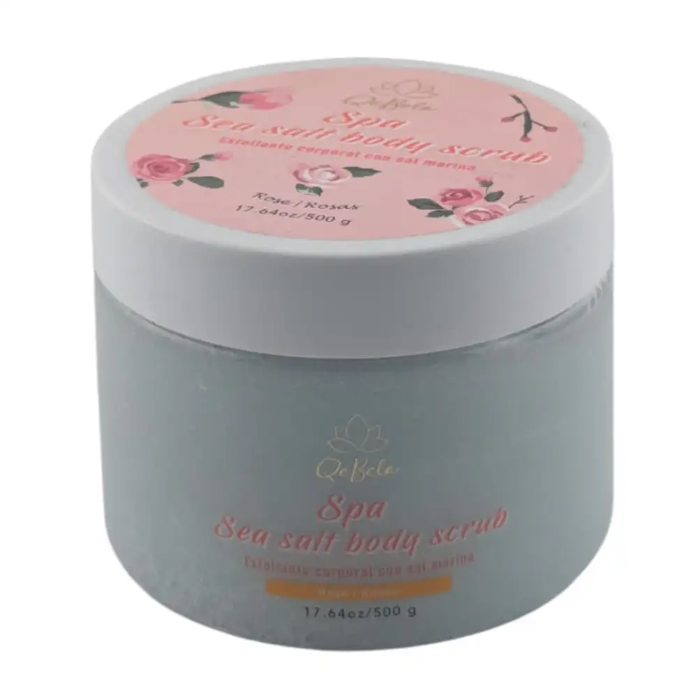 Exfoliante corporal de sal marina Qe Bele: elimina células muertas, hidrata y revitaliza la piel, dejándola suave, radiante y lista para el cuidado diario con una fórmula natural y libre de irritantes.