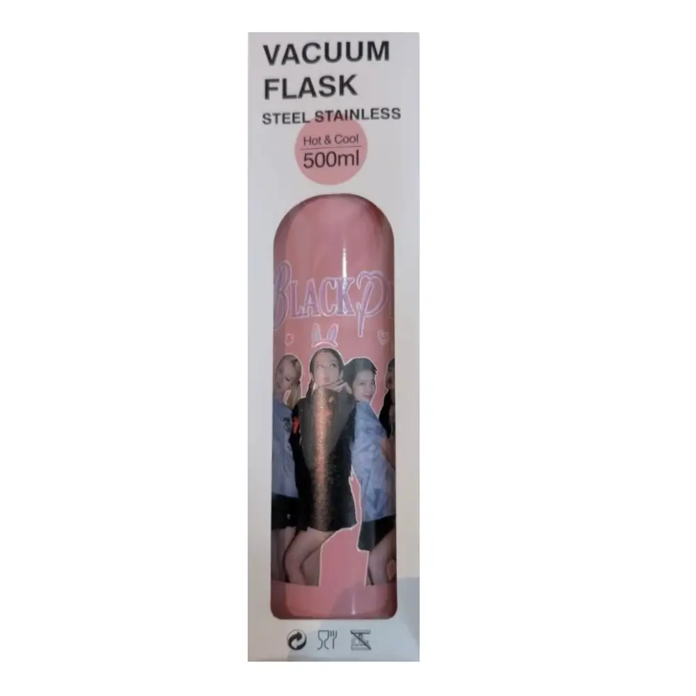 Termo de acero inoxidable con diseño Kpop, ideal para conservar bebidas frías y calientes. Perfecto para fans y uso diario. ¡Llévalo contigo!