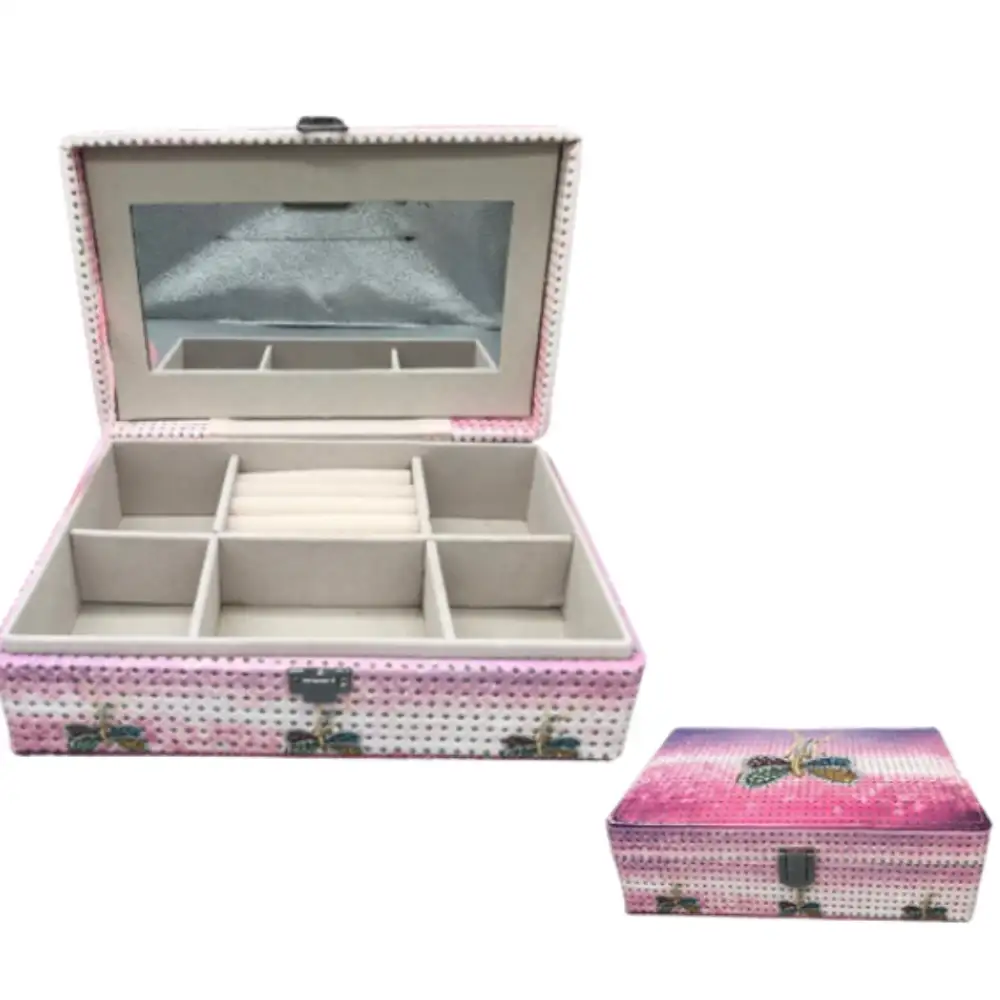 • Este joyero de plaza incluye una tapa con espejo integrado de alta claridad, ideal para probar accesorios antes de usarlos el espejo está protegido por un borde de goma que previene roturas y brinda una visión nítida sin distorsiones, convirtiendo al joyero en una solución completa de almacenamiento y presentación para sus piezas más preciadas.