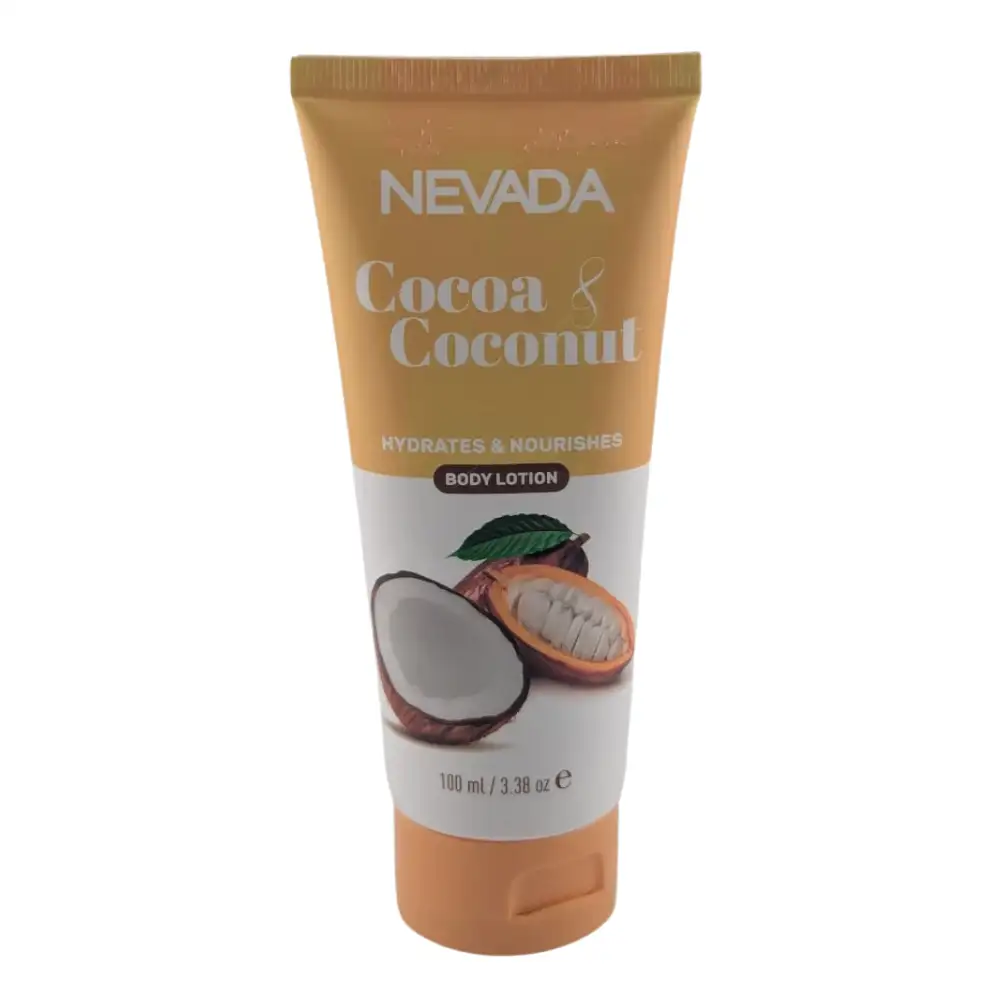 Loción corporal Nevada Cocoa & Coconut: hidratación profunda 24 h, nutre con cacao y aceite de coco, absorción rápida, ideal para piel seca y sensible.