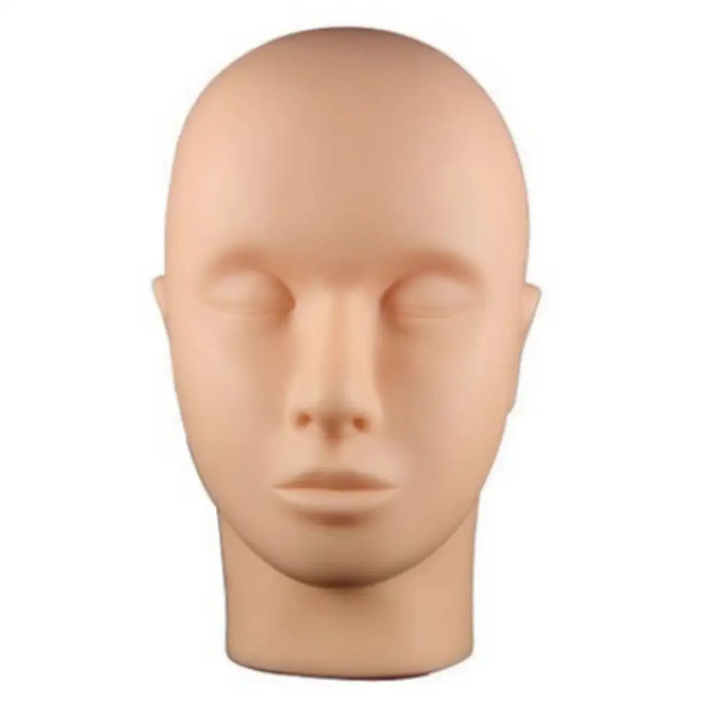Maniquí de cabeza profesional con piel sintética, base estable y cuello giratorio 360°, para practicar extensiones de pestañas y microblading, aumenta precisión.