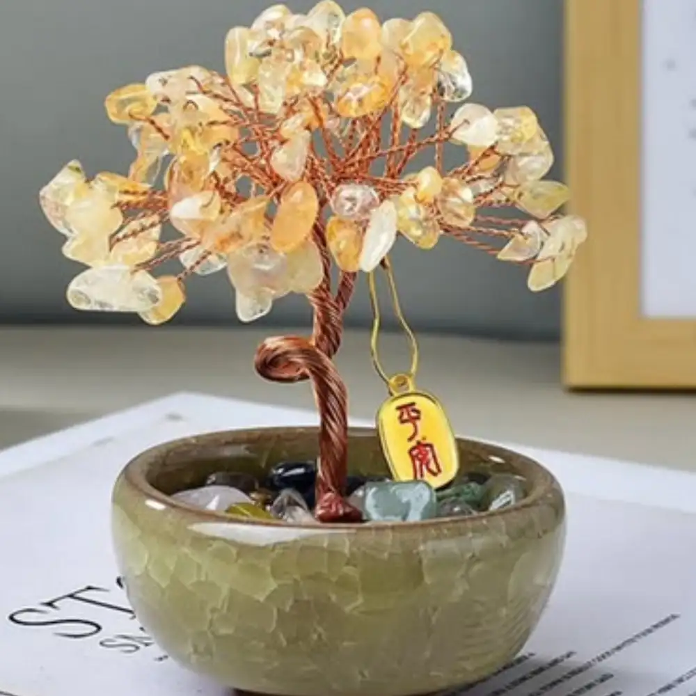 Árbol de Cuarzo Natural Estilo Bonsái en Color Amarillo – Pieza Decorativa Única para Realzar Espacios Interiores y Exteriores con Energía Positiva y Elegancia Natural