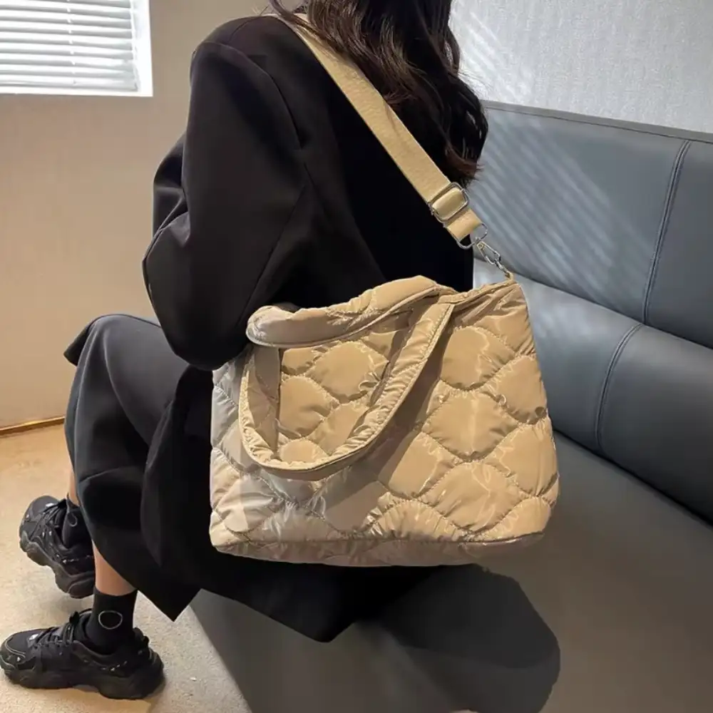 • El color beige neutro, combinado con el patrón de rombos geométricos en tono metálico, brinda una estética moderna y versátil que complementa tanto atuendos formales como casuales su brillo sutil capta la luz de manera elegante, convirtiéndola en el accesorio ideal para profesionales, viajeros y amantes del diseño contemporáneo, además, su diseño ergonómico permite una manipulación cómoda incluso con guantes.