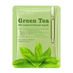 Mascarilla Facial de Té Verde SADOER – Tratamiento Antioxidante y Rejuvenecedor con Extracto Natural de Camellia sin Parabenos, Ideal para Piel Sensible, Mejora la Elasticidad y Reduce Signos de Fatiga